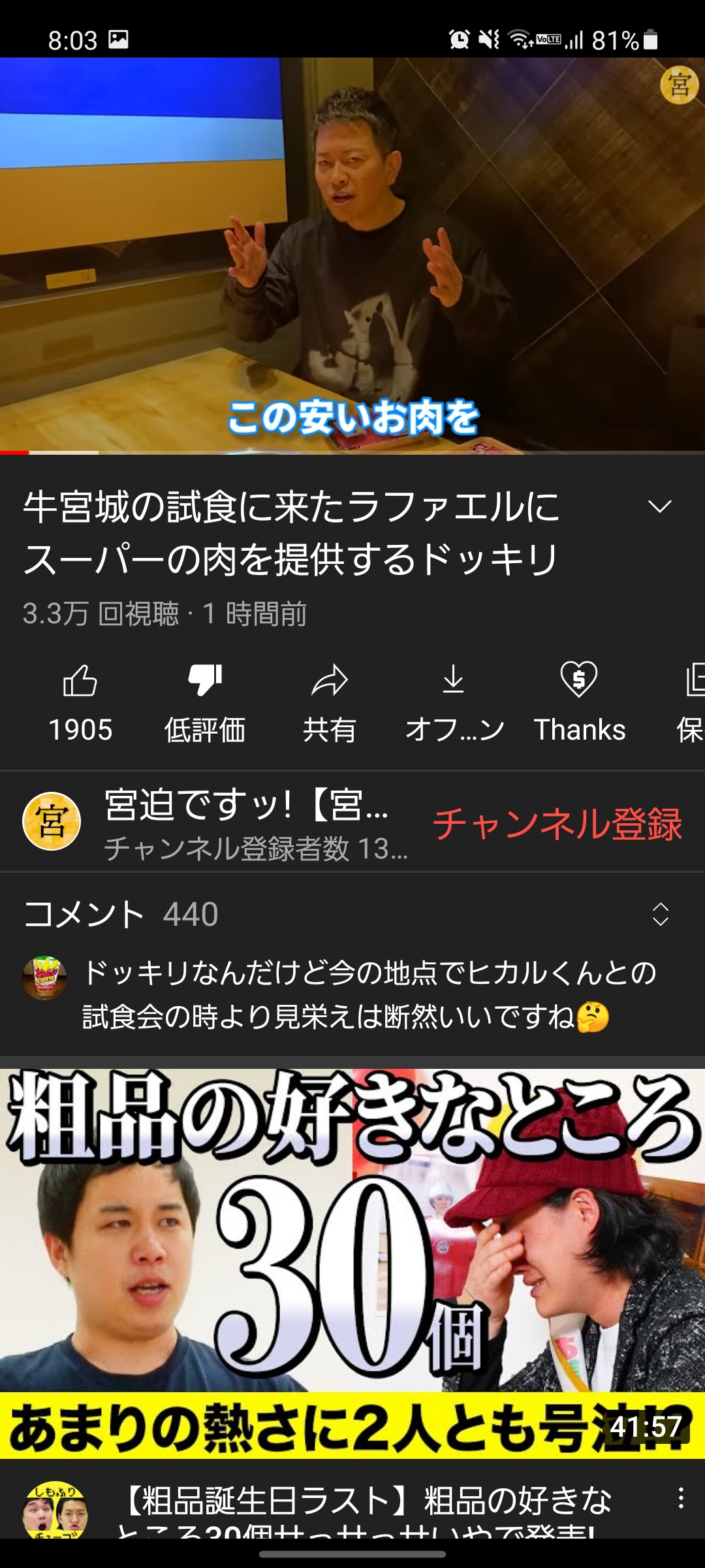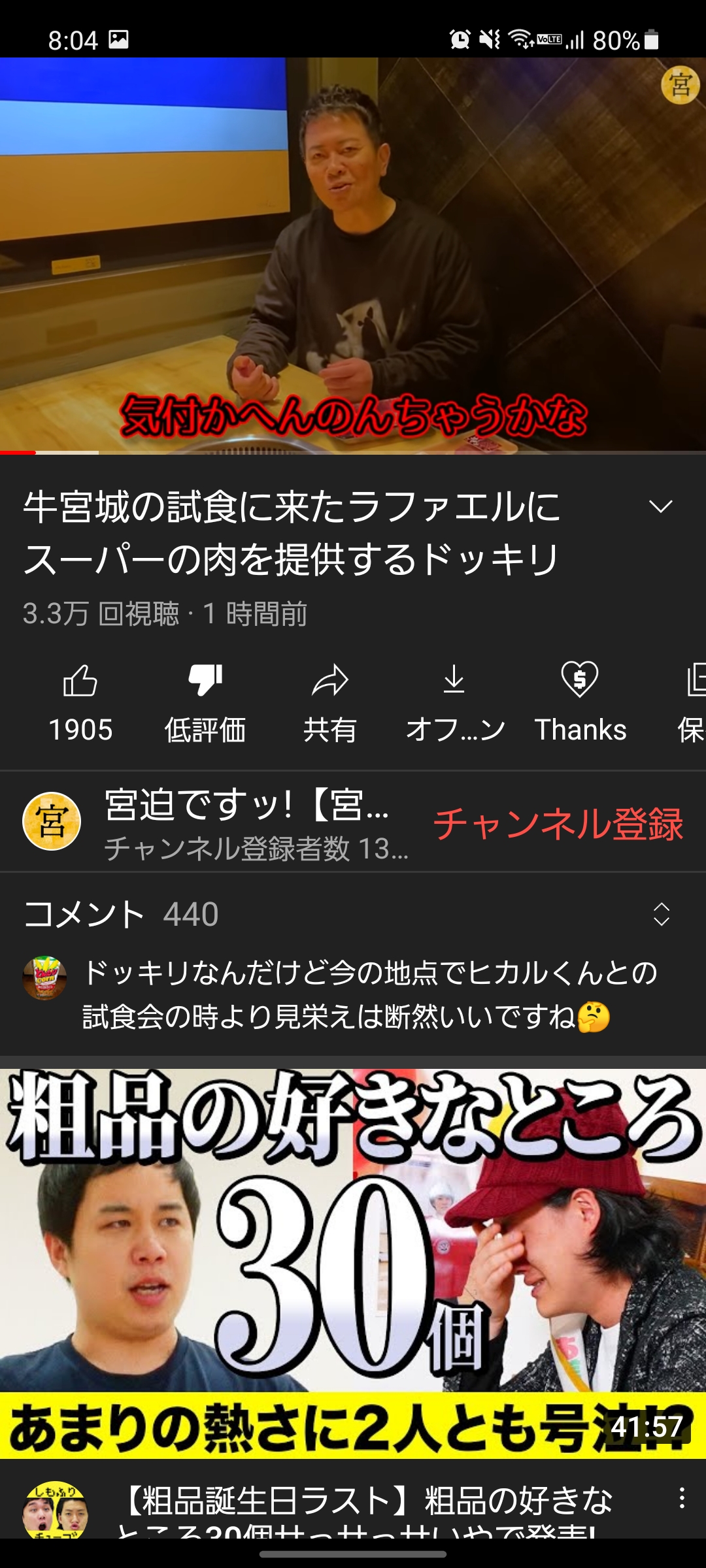 【悲報】宮迫博之さん、今度はスーパーの肉を馬鹿にする動画を出してしまう Twitter Facebook はてブ LINE コピー 2022.01.13 スポンサーリンク 1:風吹けば名無し:2022/01/13(木) 20:07:18.76 ID:6LXhDd7bd.net 牛宮城の美味しい肉と見せかけてスーパーの肉を食わせるドッキリを敢行 3:風吹けば名無し:2022/01/13(木) 20:07:46.87 ID:9NcyHMPcd.net これにはツナマヨ民大激怒 4:風吹けば名無し:2022/01/13(木) 20:07:58.80 ID:P5VUDJvn0.net 誰得ドッキリや 続きを読む