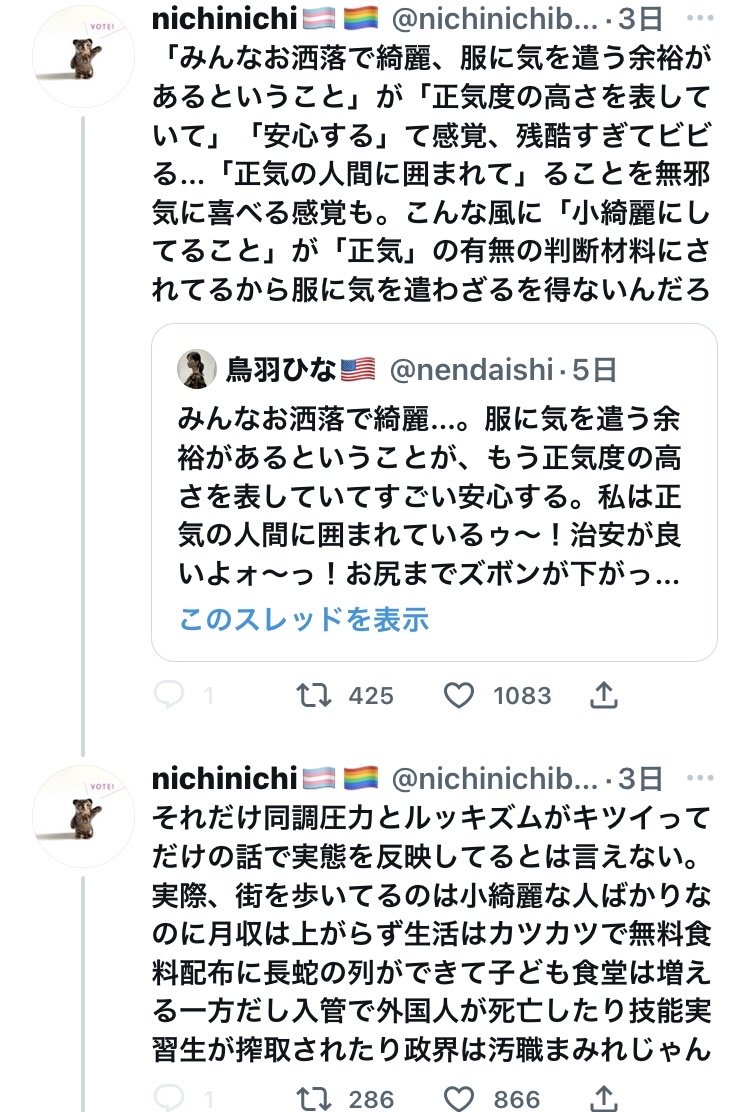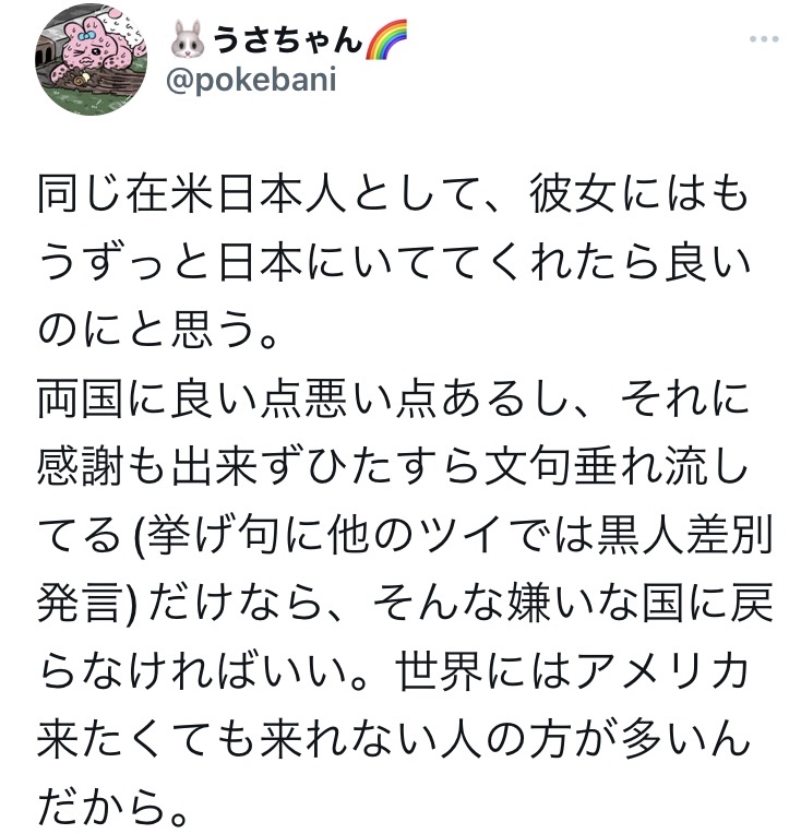 【悲報】NY在住の女さん、帰国中にアメリカに戻りたくないと愚痴ってしまいクッソ叩かれてしまう Twitter Facebook はてブ LINE コピー 2022.12.16 スポンサーリンク 1:風吹けば名無し:2022/12/15(木) 21:09:04.89 女「ニューヨーク治安悪いし服汚い奴多いし物価高いし最悪!戻りたくない」 敵「差別差別差別差別ゥ!!!!」 ↓ 3:風吹けば名無し:2022/12/15(木) 21:10:33.98 なんでそんなに日本がよく書かれることが嫌なんやろか 続きを読む