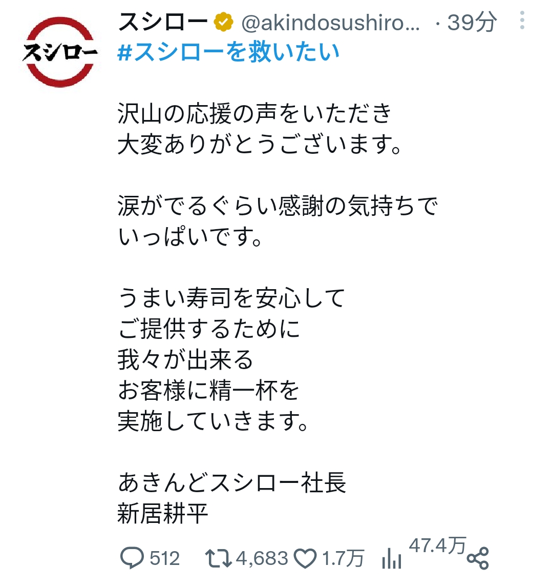 【感動】Twitterで「#スシローを救いたい」がトレンド入り、感極まったスシロー社長が号泣 Twitter Facebook はてブ LINE コピー 2023.02.02 スポンサーリンク 1:以下、5ちゃんねるからVIPがお送りします:2023/02/02(木) 17:54:24.965 ID:vepbsstIM0202 金髪ペロペロ男は救われないのか… 3:以下、5ちゃんねるからVIPがお送りします:2023/02/02(木) 17:56:07.635 ID:K6mL//cYa0202 高校生以下入店禁止にすれば解決 続きを読む