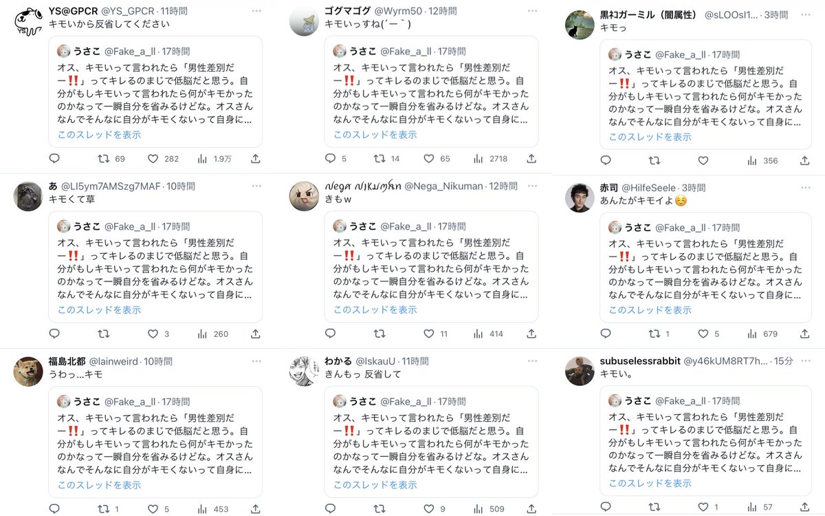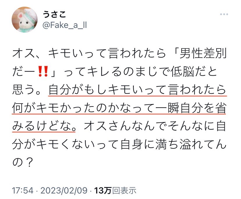 女性さん「オスってなんでキモいって言われて怒るの?女性ならまず何が悪いか自分を省みるのに」