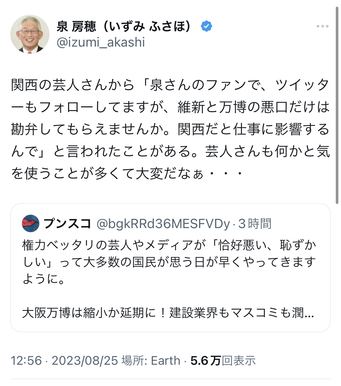 【悲報】関西芸人「維新と万博の悪口だけは勘弁してください」 Twitter Facebook はてブ LINE コピー 2023.08.26 スポンサーリンク 1:2023/08/26(土) 07:06:26.98 ID:9qHznHCY0ズブズブやなあ…転載元スレッド:https://nova.5ch.net/test/read.cgi/livegalileo/1693001186/ 続きを読む