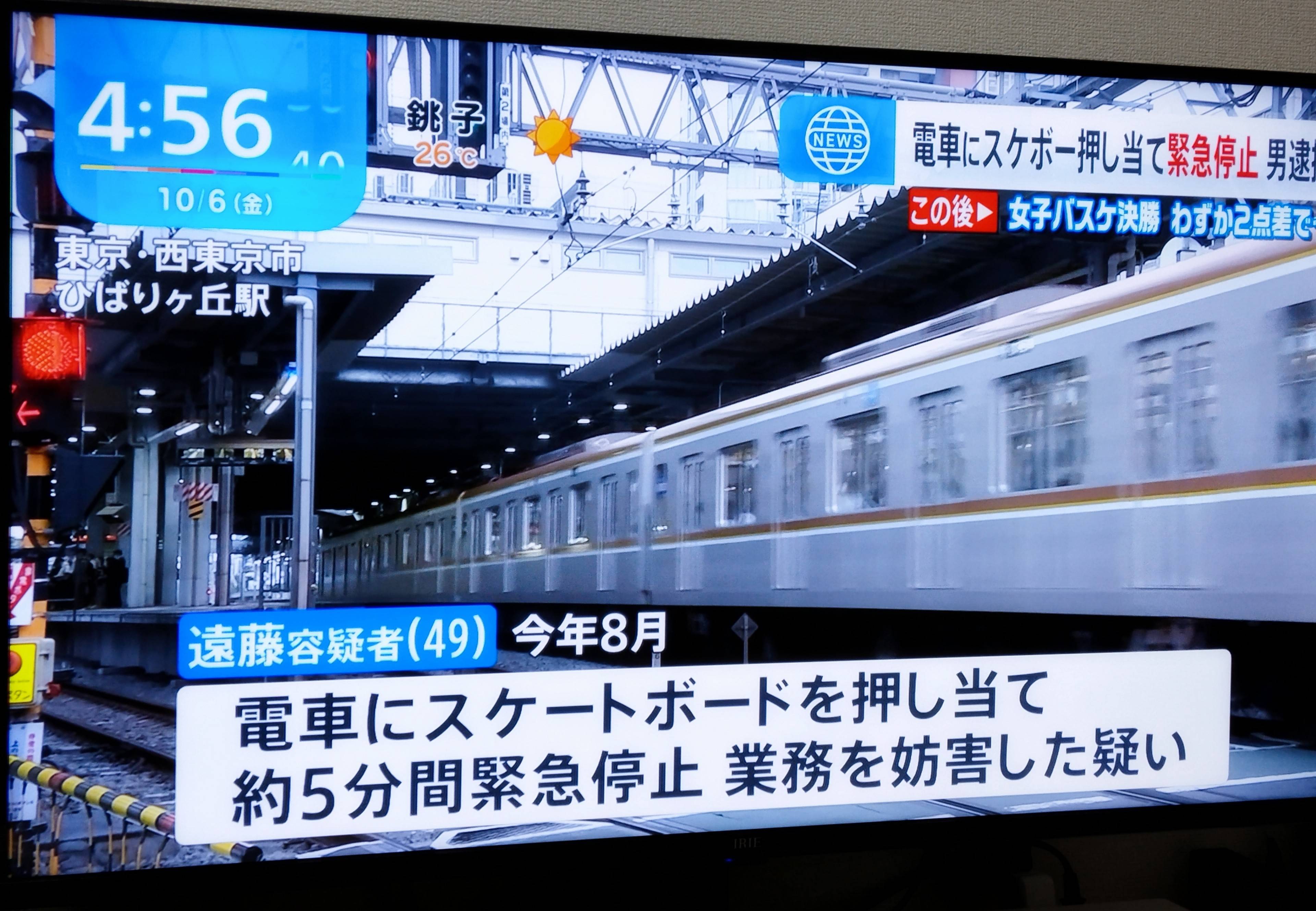 車体にスケボー押し当て電車緊急停止 業務妨害容疑で49歳男逮捕