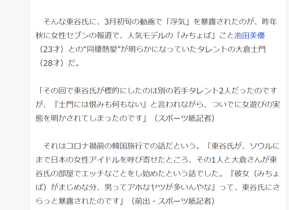 【悲報】みちょぱの彼氏、浮気を暴露される Twitter Facebook はてブ LINE コピー 2022.03.29 スポンサーリンク 1:風吹けば名無し:2022/03/29(火) 13:19:03.27 ID:U4npy+aF0NIKU.net 草 2:風吹けば名無し:2022/03/29(火) 13:19:36.88 ID:U4npy+aF0NIKU.net ギャルだし別にいいよな こんなんよくあることやろ 3:風吹けば名無し:2022/03/29(火) 13:20:15.93 ID:PVgenhdo0NIKU.net モテ男の浮気なんて呼吸と同じやろ 4:風吹けば名無し:2022/03/29(火) 13:20:35.48 ID:U4npy+aF0NIKU.net >>3 ほんまそれ 続きを読む