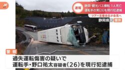 バスを運転の野口祐太容疑者(26)「ブレーキが利かなくなった」趣旨の供述 静岡・観光バス横転事故バスを運転の野口祐太容疑者(26)「ブレーキが利かなくなった」趣旨の供述 静岡・観光バス横転事故...