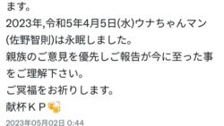 Uncategorized 昨日亡くなったウナちゃんマンの最新の配信がヤバい… (※画像あり)