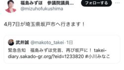 1 : 以下、?ちゃんねるからVIPがお送りします :2024/04/08(月) 08:32:45.023 ID:++j5Ins10.netそんな間違いある?4月7日が埼玉県坂戸市へ行きます! https://t.co/JEzqbpa57J— 福島みずほ 参議院議員 社民党党首 (@mizuhofukushima) April 6, 2024転載元スレッド:http...