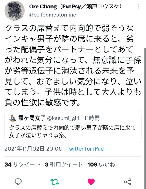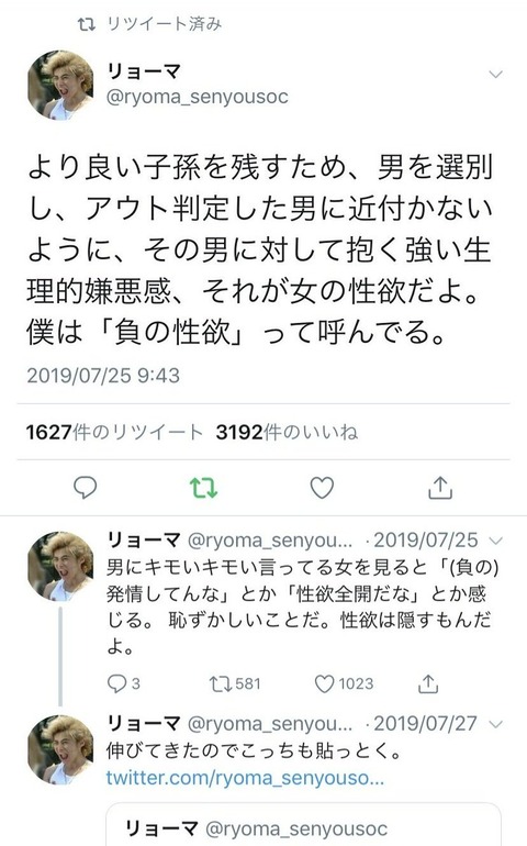 【悲報】女性、弱者男性に対し性欲全開だったことが判明WWWIWWWIWWWIWWW Twitter Facebook はてブ LINE コピー 2022.06.19 スポンサーリンク 1:風吹けば名無し:2022/06/19(日) 08:19:36.20 ID:h1dksIXgr.net 2:風吹けば名無し:2022/06/19(日) 08:20:25.87 ID:h1dksIXgr.net 弱者男性は女性からのセクハラ辛そうやねぇ~ 3:風吹けば名無し:2022/06/19(日) 08:21:09.42 ID:YP3m2JuP0.net 確かに酷いセクハラやな なんでこれ問題にならんねん 続きを読む