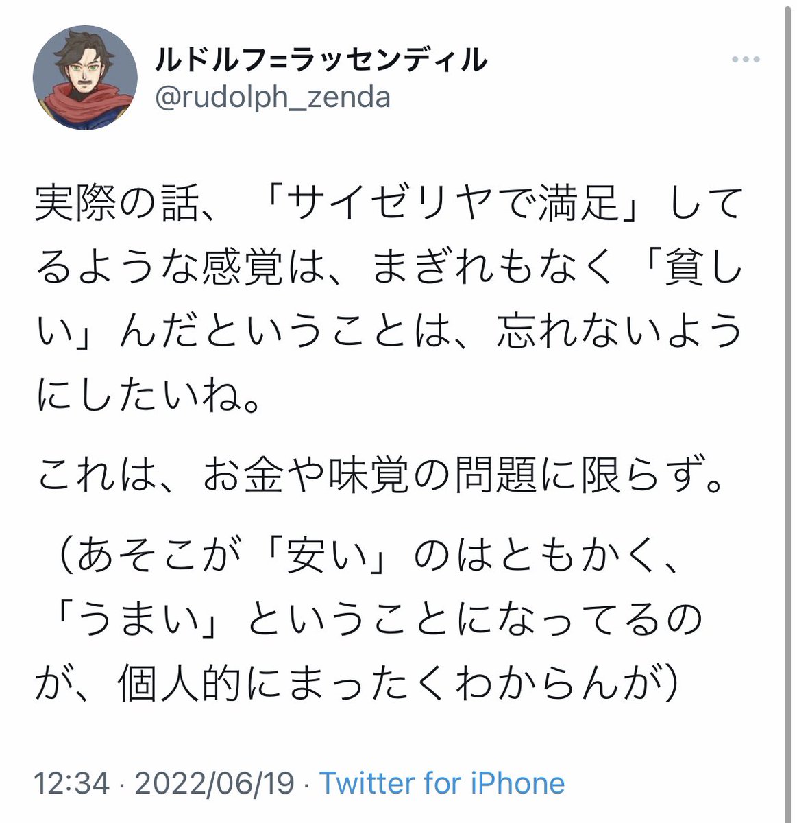 「サイゼリアで満足するのは貧しい証拠」→日本人「サイゼリアで満足できない精神性こそが貧しいだろ」 Twitter Facebook はてブ LINE コピー 2022.06.20 スポンサーリンク 1 : 子持ち銀河(東京都) :2022/06/20(月) 08:21:59.03 ID:EMIat/sy0転載元スレッド:https://hayabusa9.5ch.net/test/read.cgi/news/1655680919/ 続きを読む