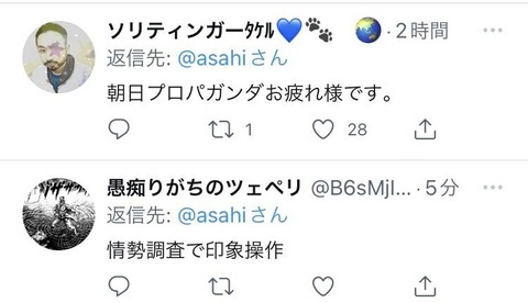 【悲報】朝日新聞「これ、自民党勝つわ…」→ツイッター民発狂 wwwwww Twitter Facebook はてブ LINE コピー 2022.06.24 スポンサーリンク 1::2022/06/24(金) 11:49:41.86 ID:yOYlQAKn0 BE:633829778-2BP(2000) ↓ 3::2022/06/24(金) 11:50:53.71 ID:GciA0KrR0.net 自分達も散々やってるだろw 324::2022/06/24(金) 13:41:24.21 ID:1bXym+UM0.net >>3 それな 山本太郎とか特定のハッシュタグをTwitterのトレンドに入れようとかヘタしたら週1くらいでやってるよね 続きを読む