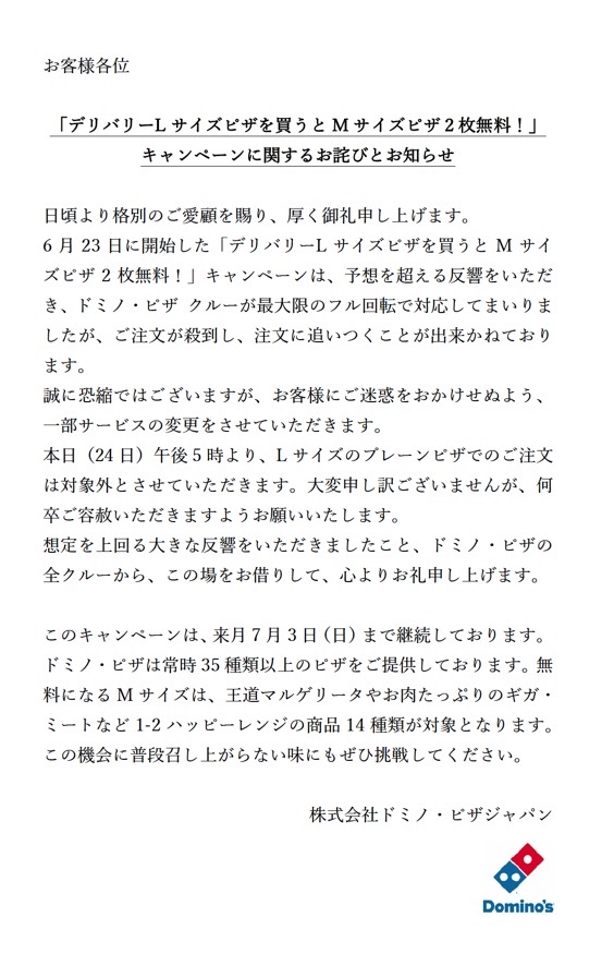 — ドミノ・ピザ (@dominos_JP) June 24, 2022