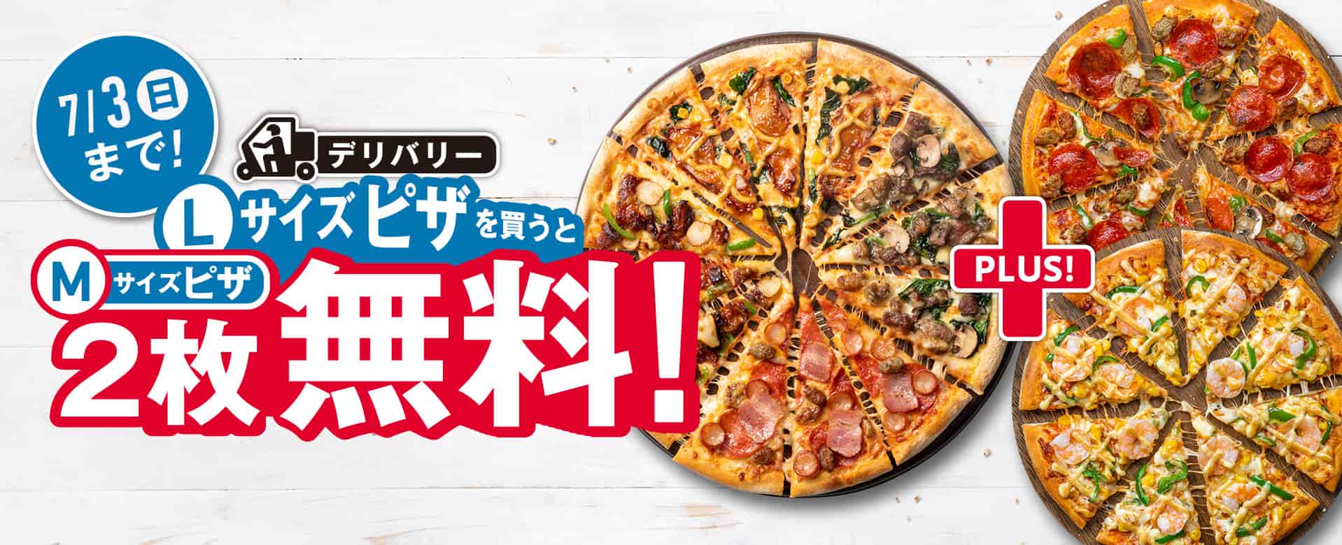ドミノピザで Lサイズ1枚頼むとMサイズが2枚無料になるキャンペーン実施