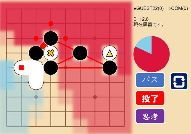 危ない石は△、もうほぼ死んでる石は×が表示されるので初心者でもわかりやすい