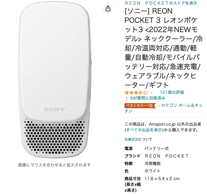 連日続く猛暑の影響で電力不足の可能性があるとして、政府は6月27日、東京電力管内に「電力受給ひっ迫注意報」を初めて発令した。家庭や企業の電力使用を巡り政府が節電を呼び掛ける中、売れ行きが好調な製品がある。ソニーグループ(ソニーG)が4月に発売した、充電式の冷温デバイス「REON POCKET 3」(レオンポケット3、メーカー希望小売価格は1万4850円)だ。同製品は「着るエアコン」とも呼ばれており、連日の猛暑などを追い風にビジネスパーソンを中心に売り上げを伸ばしている。