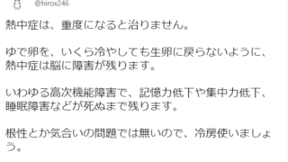 ひろゆきさん、猛暑の日本に「ゆで卵はいくら冷やしても生卵に戻らないように熱中症は脳に障害が残る」と警鐘