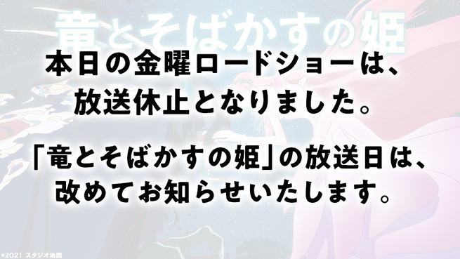 「竜とそばかすの姫」の放送日は、改めてお知らせいたします。https://t.co/1IroJVFTbo