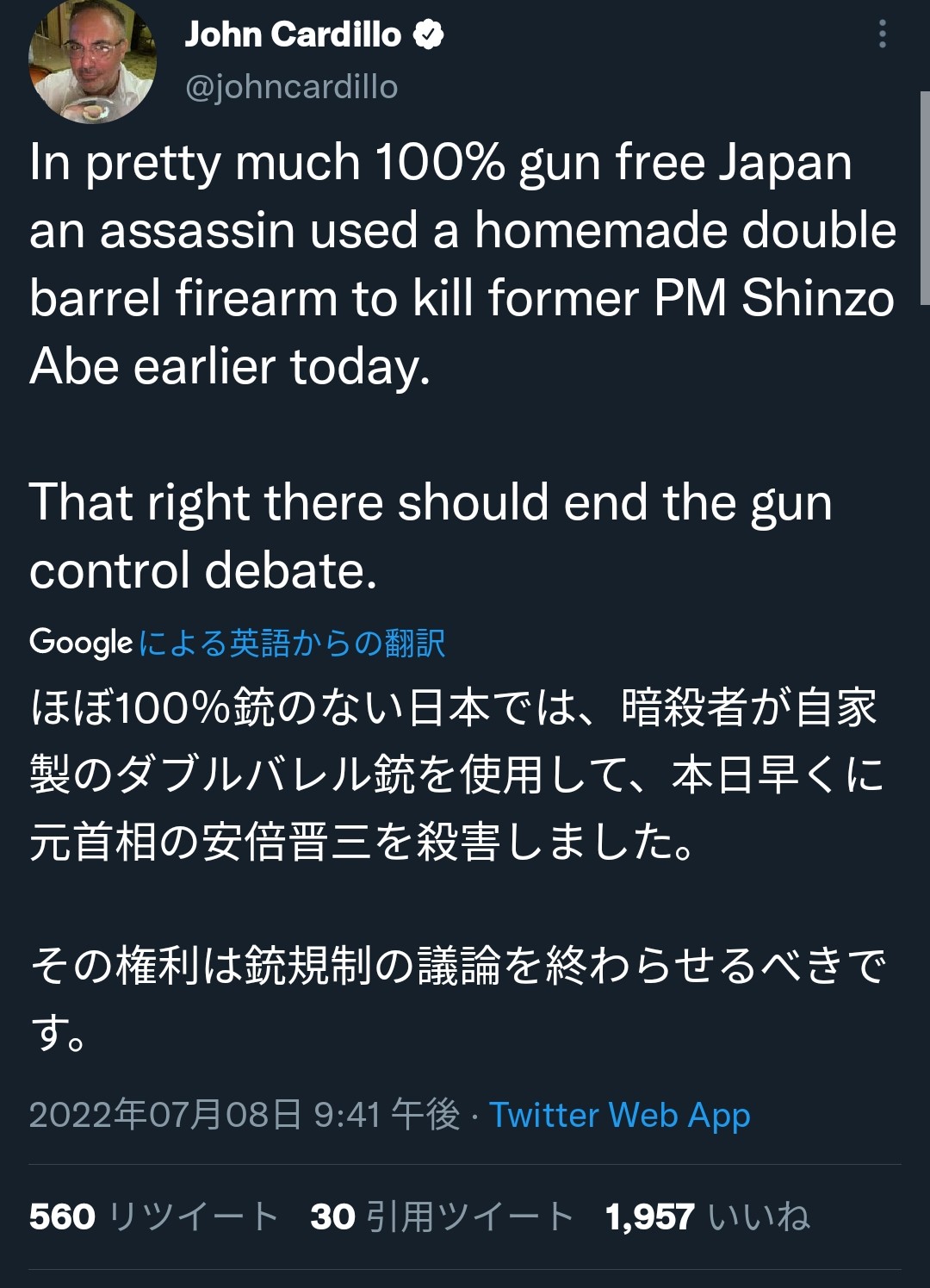 【画像】アメリカ人、銃規制論に安倍元首相の死を利用し始める Twitter Facebook はてブ LINE コピー 2022.07.09 スポンサーリンク 1 : アメリカンカール(シンガポール) :2022/07/09(土) 00:20:42.78 ID:SB0L+aBu0言ってることも意味わかんないしアメリカメディアも速報「銃規制の厳しい日本で稀」https://news.tv-asahi.co.jp/news_international/articles/amp/000260683.html転載元スレッド:https://hayabusa9.5ch.net/test/read.cgi/news/1657293642/ 続きを読む