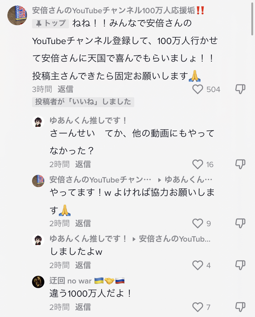 【悲報】TikTokキッズ「ねね!安倍さんのYoutubeチャンネル100万人行かせて天国で喜んでもらお!」 Twitter Facebook はてブ LINE コピー 2022.07.09 スポンサーリンク 1:2022/07/09(土) 01:20:36転載元スレッド:https://eagle.5ch.net/test/read.cgi/livejupiter/1657297236/ 続きを読む
