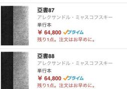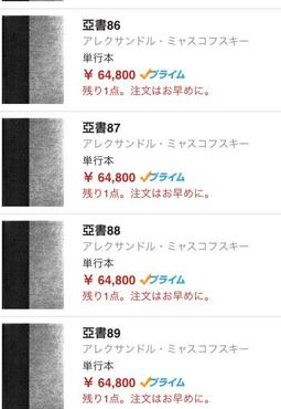 2015年2月からAmazon.comで1冊6万4800円の値段をつけた本『亞書』が96巻ほど次々と1冊ずつだけ扱われてきた[5]ことが、同年10月頃にネット上で話題となった。どの巻もA5で480ページのハードカバーである[1]。