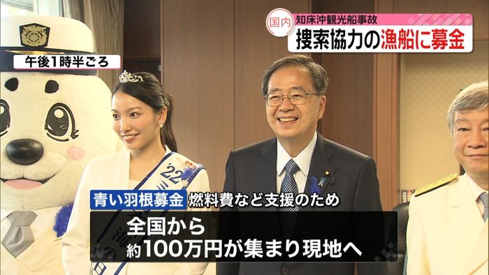 観光船事故で捜索に協力した漁船の支援に100万円が集まりました。