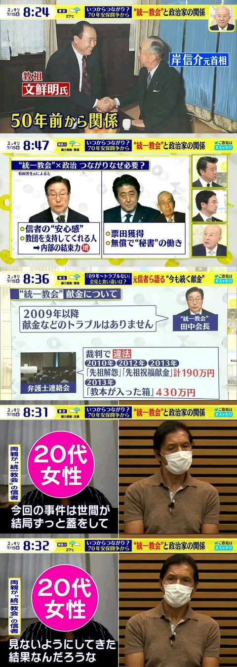国葬には統一教会も参加