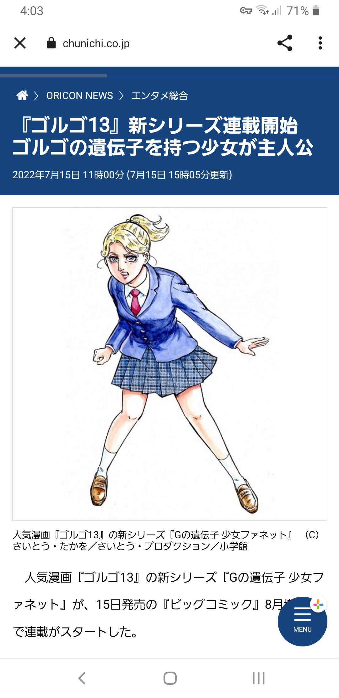【画像】ゴルゴ13のスピンオフ、ゴルゴの遺伝子を持つ女子高生が主人公wwww Twitter Facebook はてブ LINE コピー 2022.07.15 スポンサーリンク 1:風吹けば名無し:2022/07/15(金) 16:07:16.12 ID:i+VK/oIS0.net うおおおおおおお 3:風吹けば名無し:2022/07/15(金) 16:07:38.15 ID:hKb8A2Uq0.net ゴルゴの娘か 4:風吹けば名無し:2022/07/15(金) 16:07:56.92 ID:O4HMmq740.net 白人やん 続きを読む