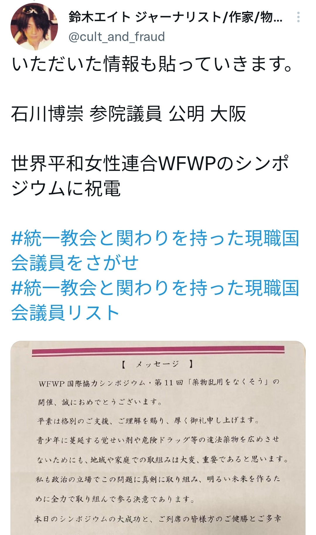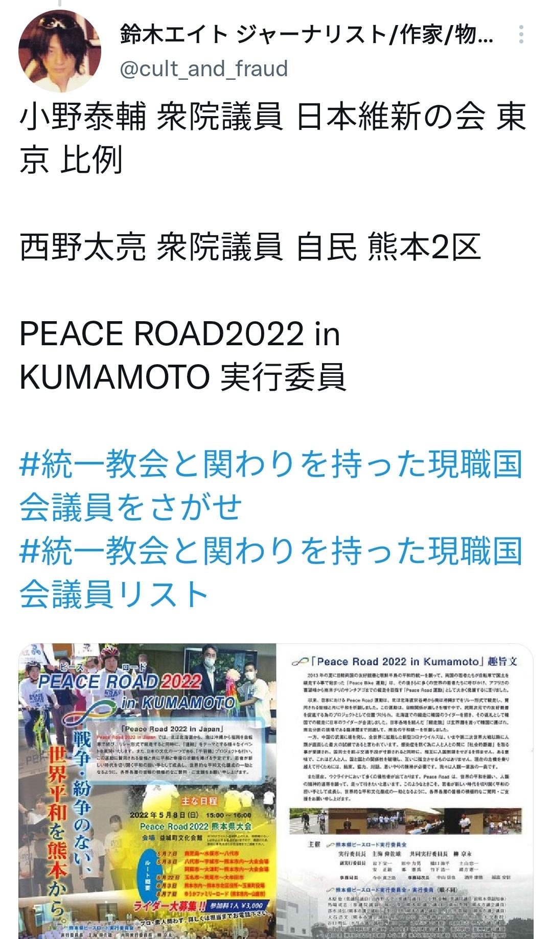 【朗報】統一教会関係議員リストどんどん増える🤩公 明党と維新が新たに加わる。 Twitter Facebook はてブ LINE コピー 2022.07.19 スポンサーリンク 1:ボンベイ(やわらか銀行) [US]:2022/07/19(火) 13:01:44 ID: ID:FZBX4T0j0 BE:487816701-PLT 信心はどうしたんや! 6:バーマン(大阪府) [EU]:2022/07/19(火) 13:04:27 公明と統一は犬猿の仲なんじゃなかったか!??? 7:アメリカンショートヘア(福井県) [GB]:2022/07/19(火) 13:04:56 そして残るは共産党だけってなるんか?w 136::2022/07/19(火) 13:38:26.55 ID:CGseSkKn0.net >>7 カルトやん 続きを読む