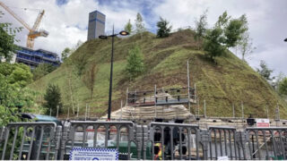しかし、足場に囲まれた構造物に草木が枯れ始めたため、£6mの人工丘は一時閉鎖を余儀なくされた。