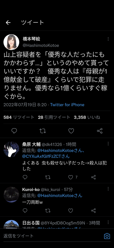 【画像】高学歴まんさん「山上容疑者が優秀な人だった扱いやめて貰えませんか?」 Twitter Facebook はてブ LINE コピー 2022.07.24 スポンサーリンク 1:以下、?ちゃんねるからVIPがお送りします:2022/07/23(土) 08:25:19 2:以下、?ちゃんねるからVIPがお送りします:2022/07/23(土) 08:26:38 そういえばこいつ右だけど統一には触れてるの? 3:以下、?ちゃんねるからVIPがお送りします:2022/07/23(土) 08:27:14 過去形なんだから間違ってないじゃん 続きを読む