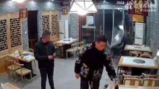 https://video.twimg.com/ext_tw_video/1480660534215462914/pu/vid/640x368/FTzWOMXV5E--zD3H.mp4Security footage shows a runaway buffalo plowing into a restaurant in China & knocking over a man inside. The man only received treatment for minor leg injuries. According to local reports, the animal escaped from a local slaughterhouse before bulldozing into the restaurant. pic.twitter.com/D70LOQwhP4