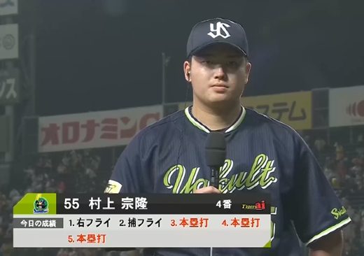 村上宗隆.316(326-103)37本95打点出塁率.449長打率.699 OPS1.149←ほんまに松井超えそう