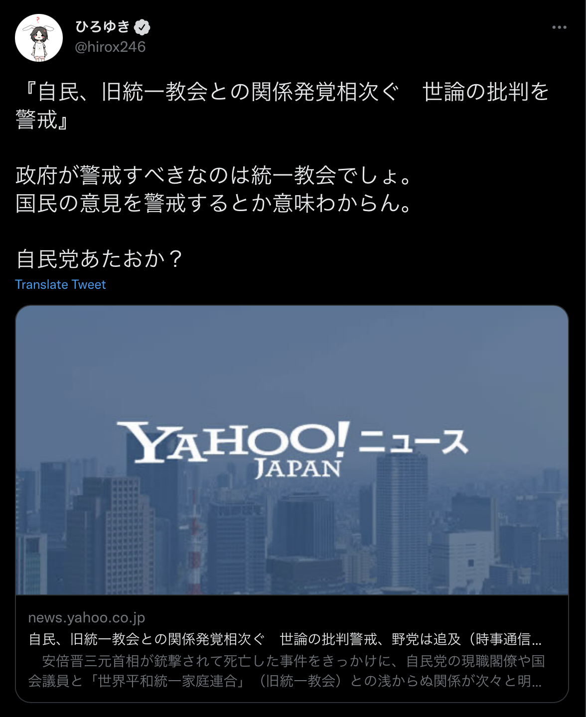 【悲報】ひろゆきブチギレ「自民党頭おかしいのか?」 Twitter Facebook はてブ LINE コピー 2022.08.02 スポンサーリンク 1:風吹けば名無し:2022/08/01(月) 21:52:25 2:風吹けば名無し:2022/08/01(月) 21:53:05 ひろゆき…戻ってきたんやな 3:風吹けば名無し:2022/08/01(月) 21:53:13 ひろゆきにマジレスされるなんて、もう終わりだよこの国 続きを読む