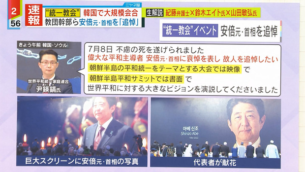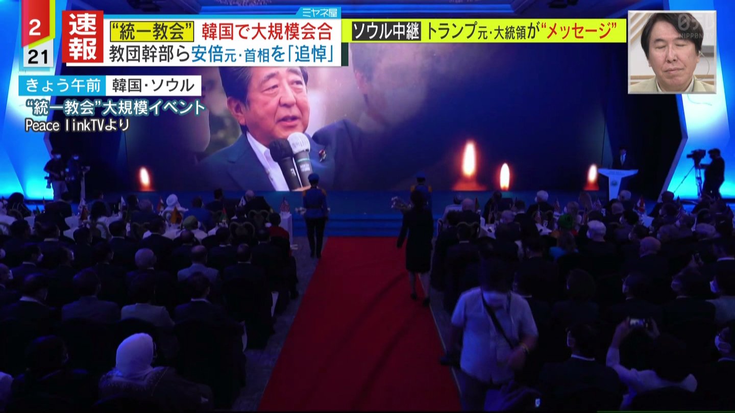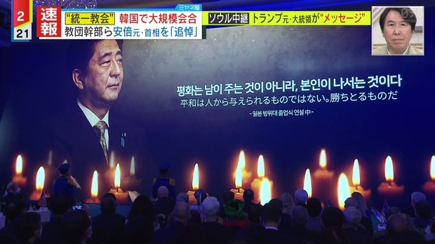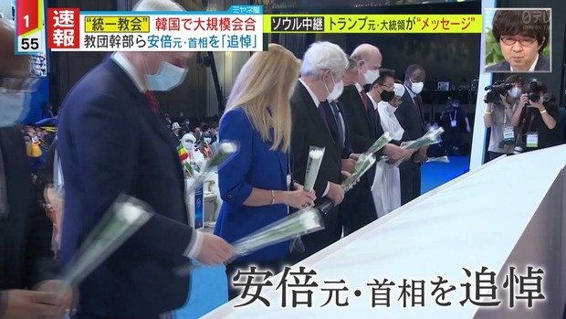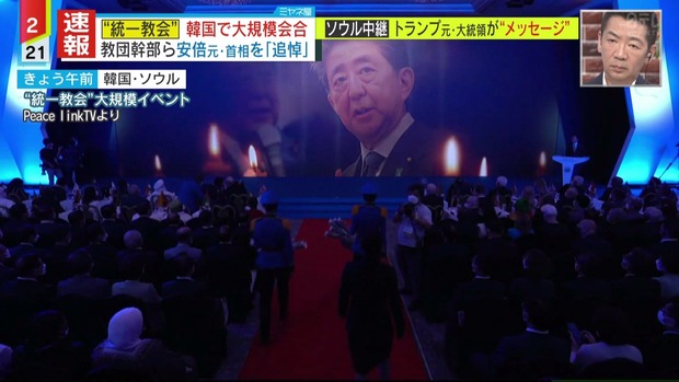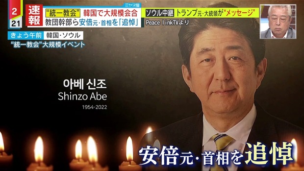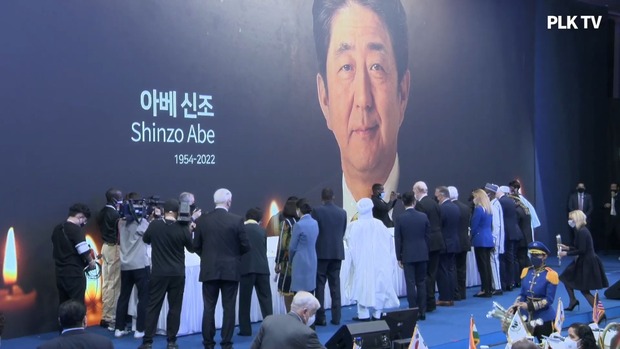 【悲報】安倍元首相、韓国にて「世界家庭葬」が盛大に開かれる もう国葬いらないだろこれ…