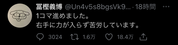 【悲報】冨樫「1コマ進めました。」←18万いいね Twitter Facebook はてブ LINE コピー 2022.08.14 スポンサーリンク 1 : 風吹けば名無し :2022/08/14(日) 09:47:40.30 ID:H0gfOu9lp1コマ進めました。右手に力が入らず苦労しています。— 冨樫義博 (@Un4v5s8bgsVk9Xp) August 13, 2022転載元スレッド:https://eagle.5ch.net/test/read.cgi/livejupiter/1660438060/ 続きを読む