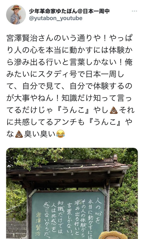 ゆたぼん親子、何をしても再生数が伸びないのでイライラしてしまうwwwwwwww Twitter Facebook はてブ LINE コピー 2022.08.15 スポンサーリンク 1:風吹けば名無し:2022/08/15(月) 08:10:56.97 ID:6Yd627Lld.net 2:風吹けば名無し:2022/08/15(月) 08:12:02.40 ID:7Ibg5rc60.net なぜ攻撃性を見せてしまうのか… 3:風吹けば名無し:2022/08/15(月) 08:12:17.19 ID:twxLarMA0.net 攻撃的すぎるな 続きを読む