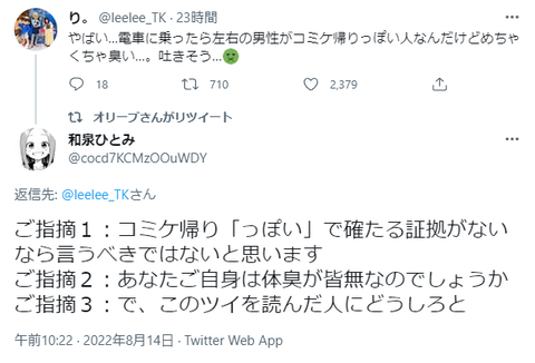 【悲報】コミケ帰りのオタク、臭すぎて炎上 Twitter Facebook はてブ LINE コピー 2022.08.15 スポンサーリンク 1:風吹けば名無し:2022/08/15(月) 06:51:53.06 ID:Njk81Vsp0.net かわいそう 3:風吹けば名無し:2022/08/15(月) 06:53:52.62 ID:uJNWnffj0.net いつも臭いから 4:風吹けば名無し:2022/08/15(月) 06:54:42.70 ID:Xiig0knEM.net 6:風吹けば名無し:2022/08/15(月) 06:56:05.83 ID:bsI3sGaN0.net >>4 きも豚シュバッってるやん 続きを読む