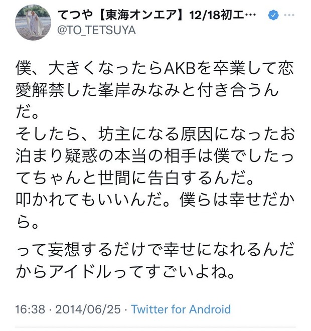 東海オンエアてつや、高1時の一目惚れ相手・峯岸みなみとの結婚は「夢物語のよう」