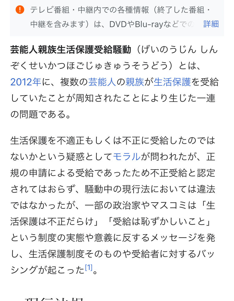 生活保護を不適正もしくは不正に受給したのではないかという疑惑としてモラルが問われたが、正規の申請による受給であったため不正受給と認定されてはおらず、騒動中の現行法においては違法ではなかったが、一部の政