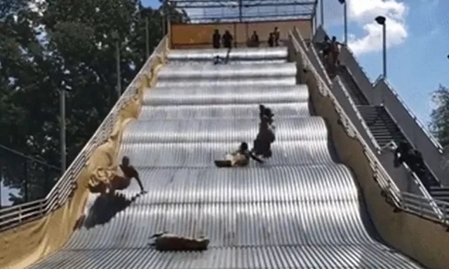 結局3時間ほどで運営は中断されてしまい、現在は滑りおりることは出来ず、再整備中だという。公園の関係者は
