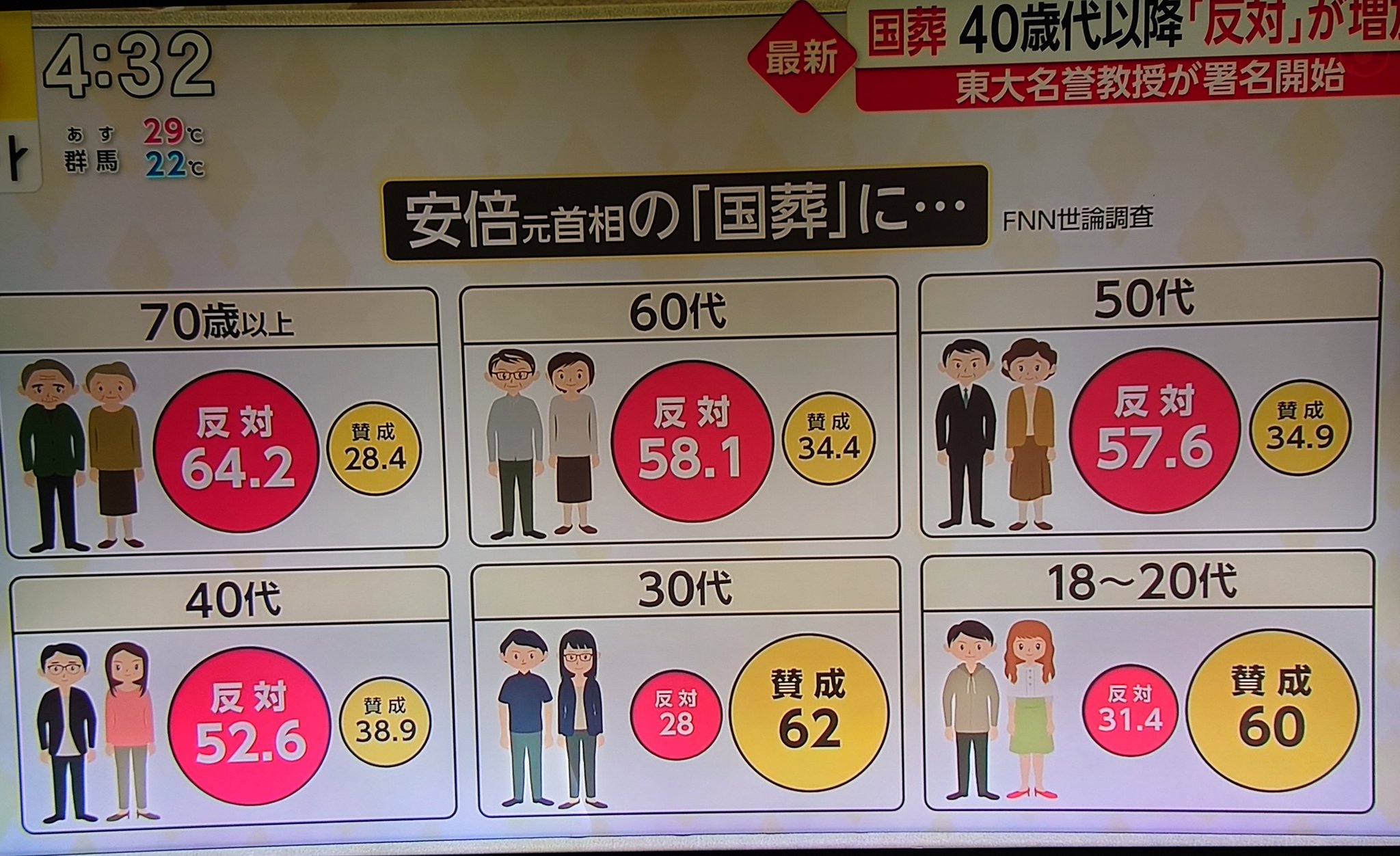 【悲報】国葬に賛成する年齢層が開示されてしまうWiWiWiWiWiWi Twitter Facebook はてブ LINE コピー 2022.08.25 スポンサーリンク 1:風吹けば名無し:2022/08/25(木) 10:19:31.04 ID:XOBMBMf70.net 3:風吹けば名無し:2022/08/25(木) 10:20:03.14 ID:eyCyG6Y9d.net 消せ消せ消せ 4:風吹けば名無し:2022/08/25(木) 10:20:08.75 ID:yutYyDsa0.net 若者はネトウヨ! 若者は統一教会! 5:風吹けば名無し:2022/08/25(木) 10:20:18.04 ID:ACb9tKL+0.net 票が厚いジジイの為の政治してきたはずやのにな 続きを読む