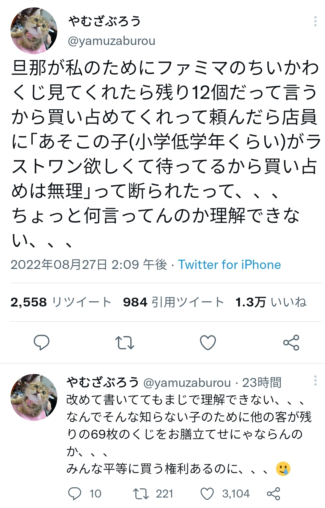 【炎上】客「ラストワン賞欲しいから残りの一番くじ全部買う」 ファミマ「ラストワンは予約済みだから駄目」 [552975476]