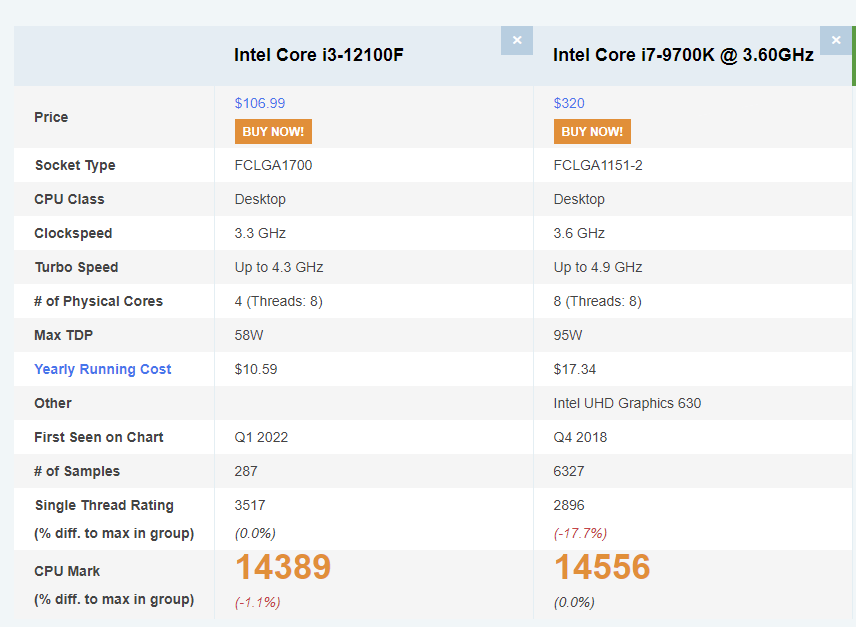 【朗報】最新のCore i3、4年前ののi7と同じ性能になってしまう・・・・