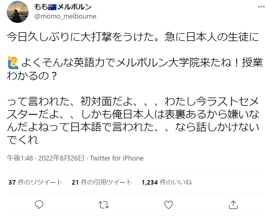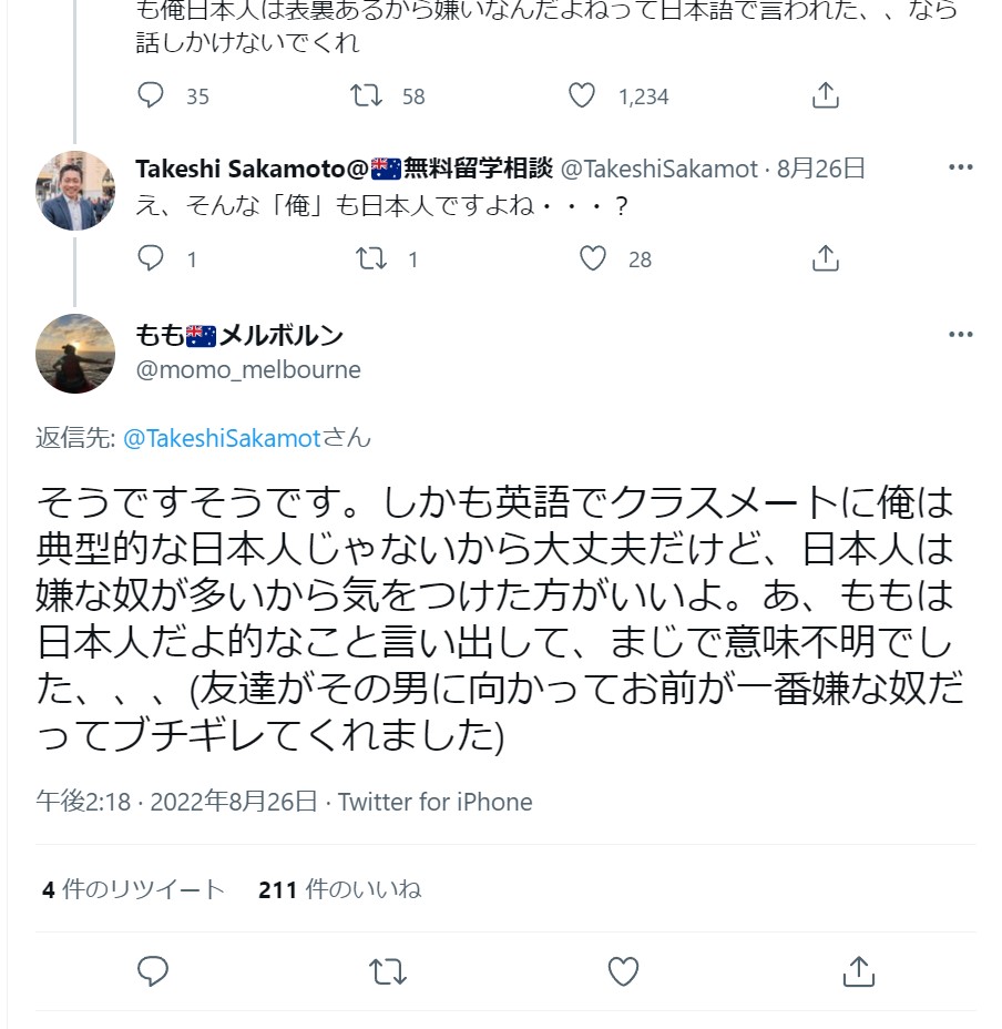 【悲報】日本人さん、海外で協力し合うどころか何故かマウントバトルをしだすw Twitter Facebook はてブ LINE コピー 2022.09.04 スポンサーリンク 1:2022/09/04(日) 18:20:06.66 ID:DZv1BuXE0オーストラリア留学日本人「なんか日本人の生徒に俺日本人嫌いて言われたんだけど・・・・・」2:2022/09/04(日) 18:21:05.34 ID:DZv1BuXE0海外の友人「なぜ日本人は民族間で助け合わないんだい?ほかの民族だと当たり前のことなのに」7:2022/09/04(日) 18:24:00.30 ID:CYUOGExQ0ややこしいな転載元スレッド:https://eagle.5ch.net/test/read.cgi/livejupiter/1662283206/ 続きを読む