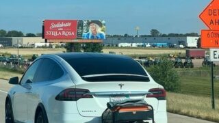 電力不足でテスラの車が充電できないので別途エンジンつけて走らせてる