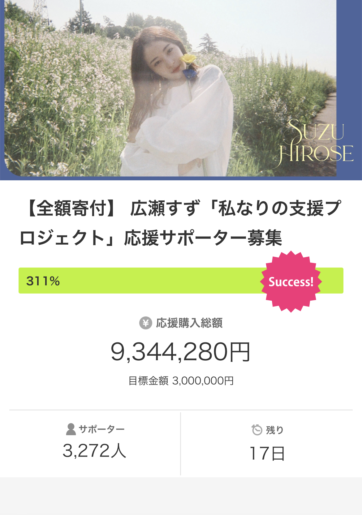 【悲報】広瀬すずさん、ひっそりとクラウドファンディングを始めてしまう😞 Twitter Facebook はてブ LINE コピー 2022.09.12 スポンサーリンク 1:風吹けば名無し:2022/09/12(月) 02:33:28.00 ID:MOtxsdDir ウクライナの復興支援に全額充てるんやってさ 2:風吹けば名無し:2022/09/12(月) 02:34:47.00 ID:J+IJbIy3H ええやん 3:風吹けば名無し:2022/09/12(月) 02:34:54.47 ID:zGUCSqlba >>1 ひっそりすぎんだろ ほんとに本人がやってるんやろか 4:風吹けば名無し:2022/09/12(月) 02:35:15.40 ID:4QhWYfAD0 ひっそりで900万かよ 続きを読む
