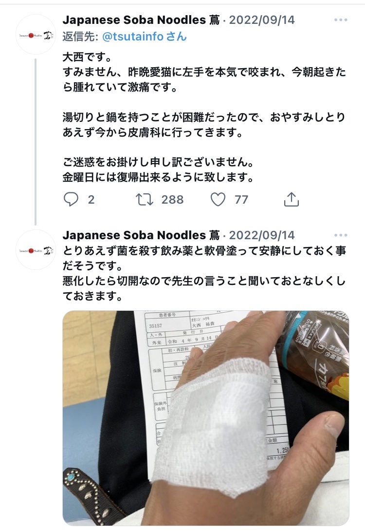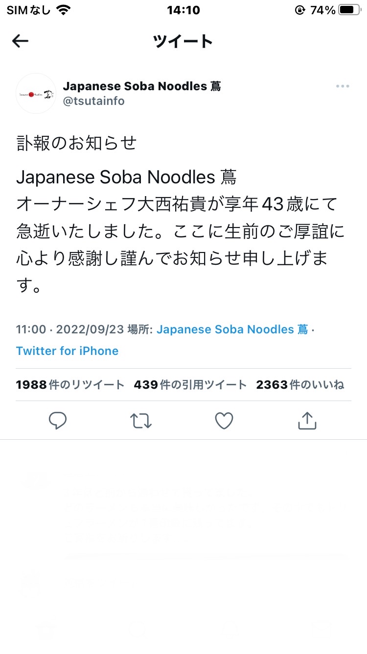 大西祐貴シェフ、猫に手を噛まれて死亡 Twitter Facebook はてブ LINE コピー 2022.09.23 スポンサーリンク 1:2022/09/23(金) 14:49:18.81 ●【訃報】"Japanese Soba Noodles 蔦"の大西祐貴シェフ死去。9/14に愛猫に噛まれたツイート、9/13にアメーバブログ「生涯ラーメン一本勝負」を更新も…死因はなぜ?ご冥福をお祈りいたします。 : 超絶"厳選"ニュースまとめchhttps://www.slangeigo.com/archives/59752177.html2:NG NGソース転載元スレッド:https://hayabusa9.5ch.net/test/read.cgi/news/1663912158/ 続きを読む