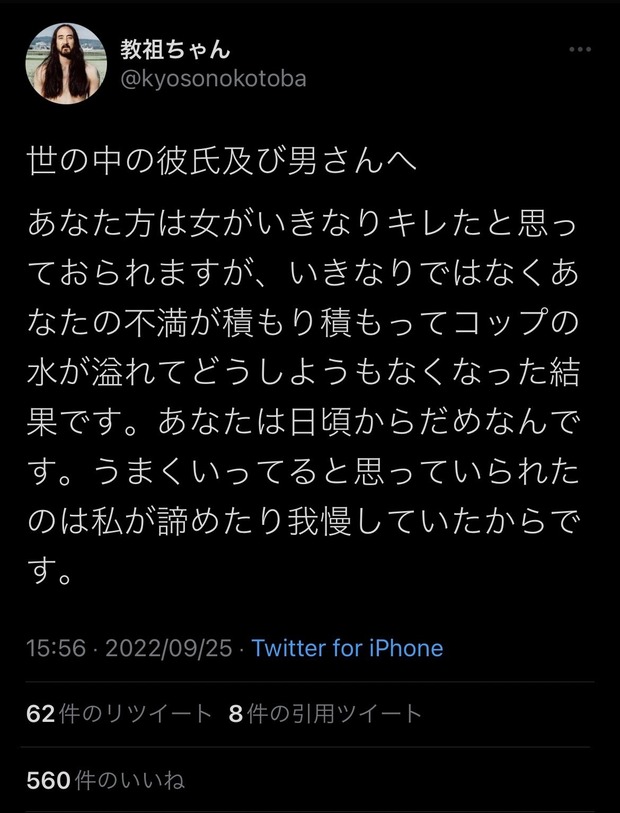 女「世の中の男さんへ。いきなり女性がキレたと思ってるだろうが、ずっと我慢してただけ。お前が悪い」 Twitter Facebook はてブ LINE コピー 2022.09.26 スポンサーリンク 1 : 風吹けば名無し :2022/09/26(月) 12:04:48.61 ID:D0m1Yc1p0転載元スレッド:https://eagle.5ch.net/test/read.cgi/livejupiter/1664161488/ 続きを読む