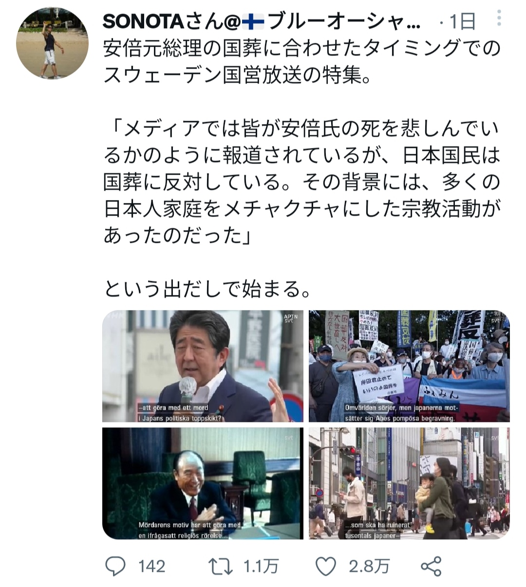 【悲報】スウェーデン国営放送さん、安倍さんと統一教会の関係性を報道してしまうwwww Twitter Facebook はてブ LINE コピー 2022.09.29 スポンサーリンク 1:2022/09/29(木) 15:25:03.36 ID:5ig7e/xB0NIKU転載元スレッド:https://eagle.5ch.net/test/read.cgi/livejupiter/1664432703/ 続きを読む