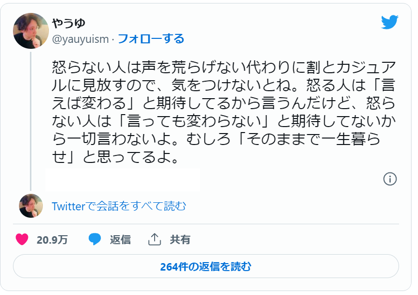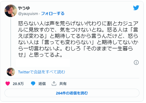 【速報】Twitter「これが怒る人と怒らない人の違いです」 → 20.9万いいね Twitter Facebook はてブ LINE コピー 2022.10.03 スポンサーリンク 1:2022/10/02(日) 21:10:54.15 ID:tB0ekPVf0転載元スレッド:https://hayabusa9.5ch.net/test/read.cgi/news/1664712654/ 続きを読む