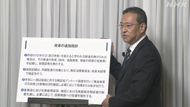 「世界平和統一家庭連合」、旧統一教会は、信者からの献金について、月収の3割を一定の基準とする改革の追加指針を発表しました。