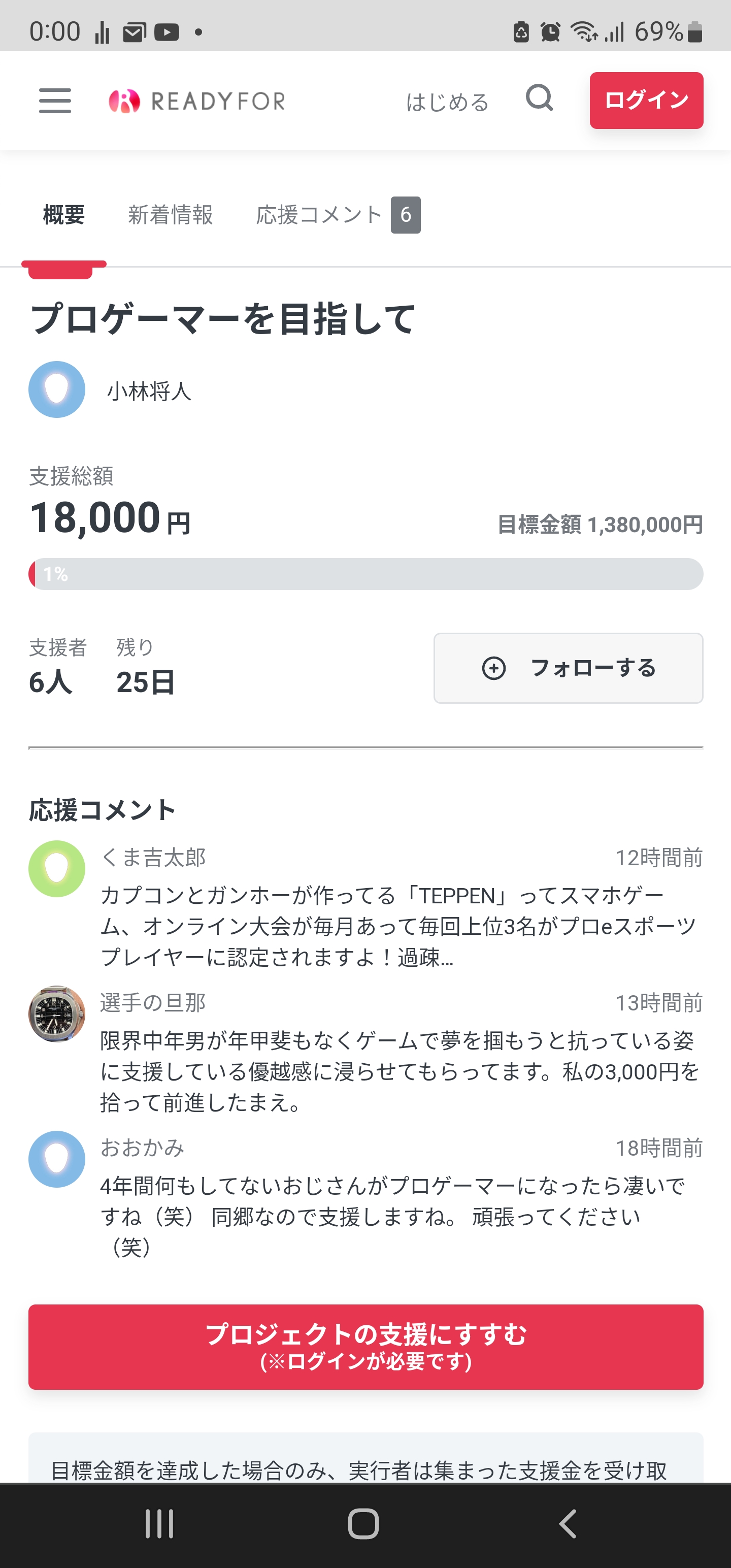 プロゲーマーになる為に必要な資金を調達する為のプロジェクトです。